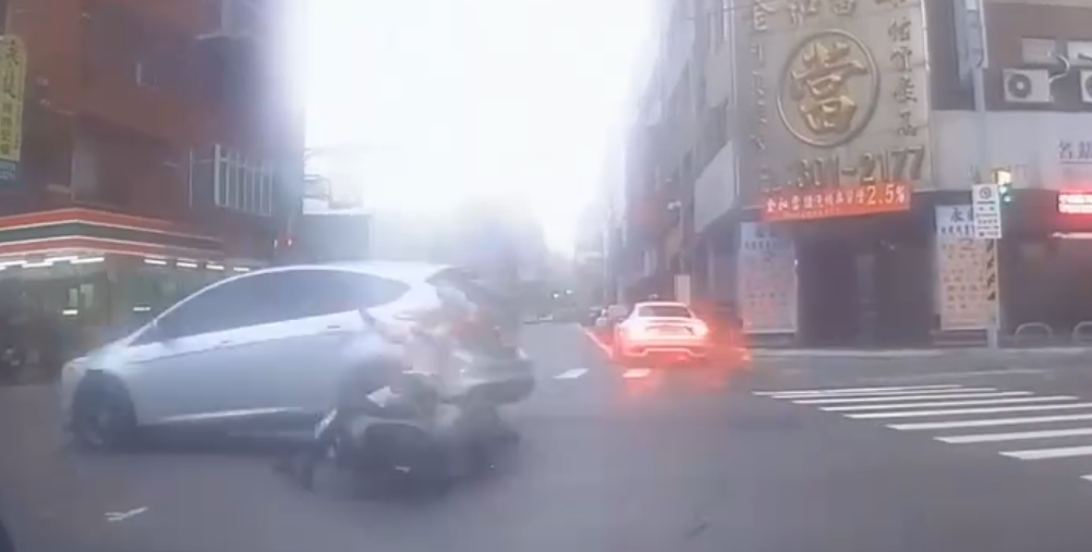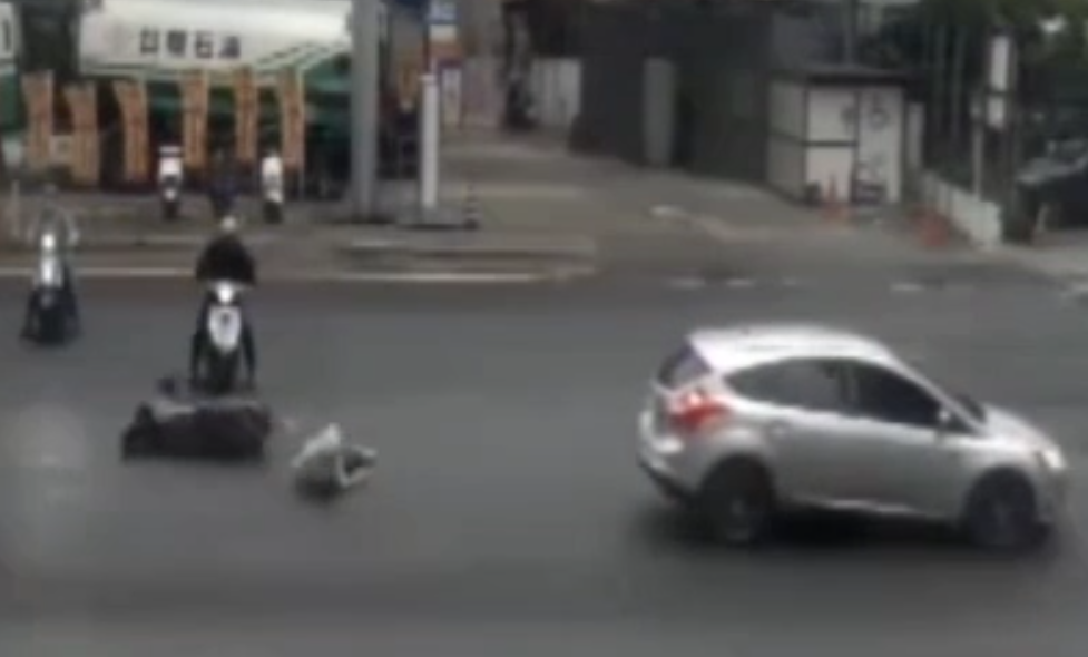 撞擊畫面曝光! 桃園自小客車闖紅擊落機車女騎士