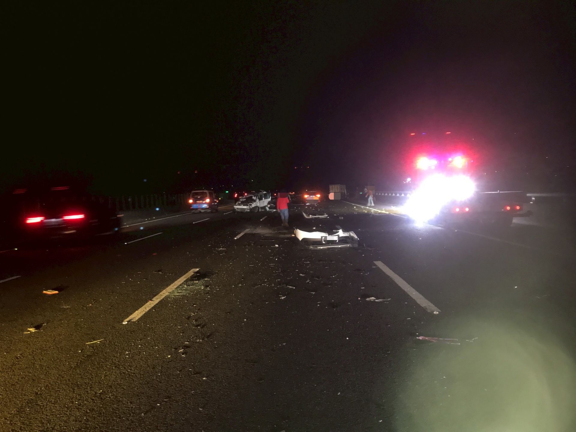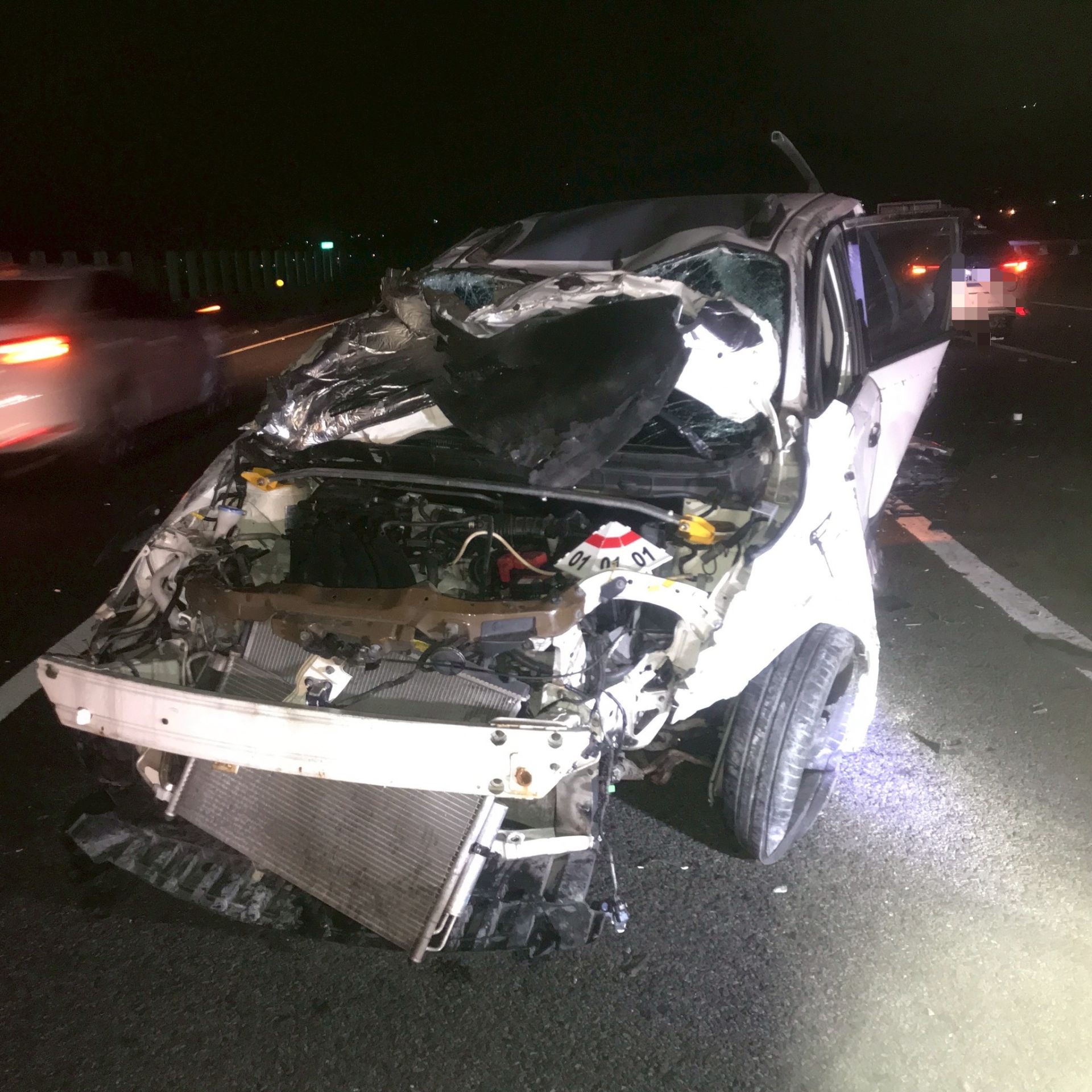 國道3號連環車禍! 4車相撞1輛自小客車疊在另輛自小客車車頂釀兩傷