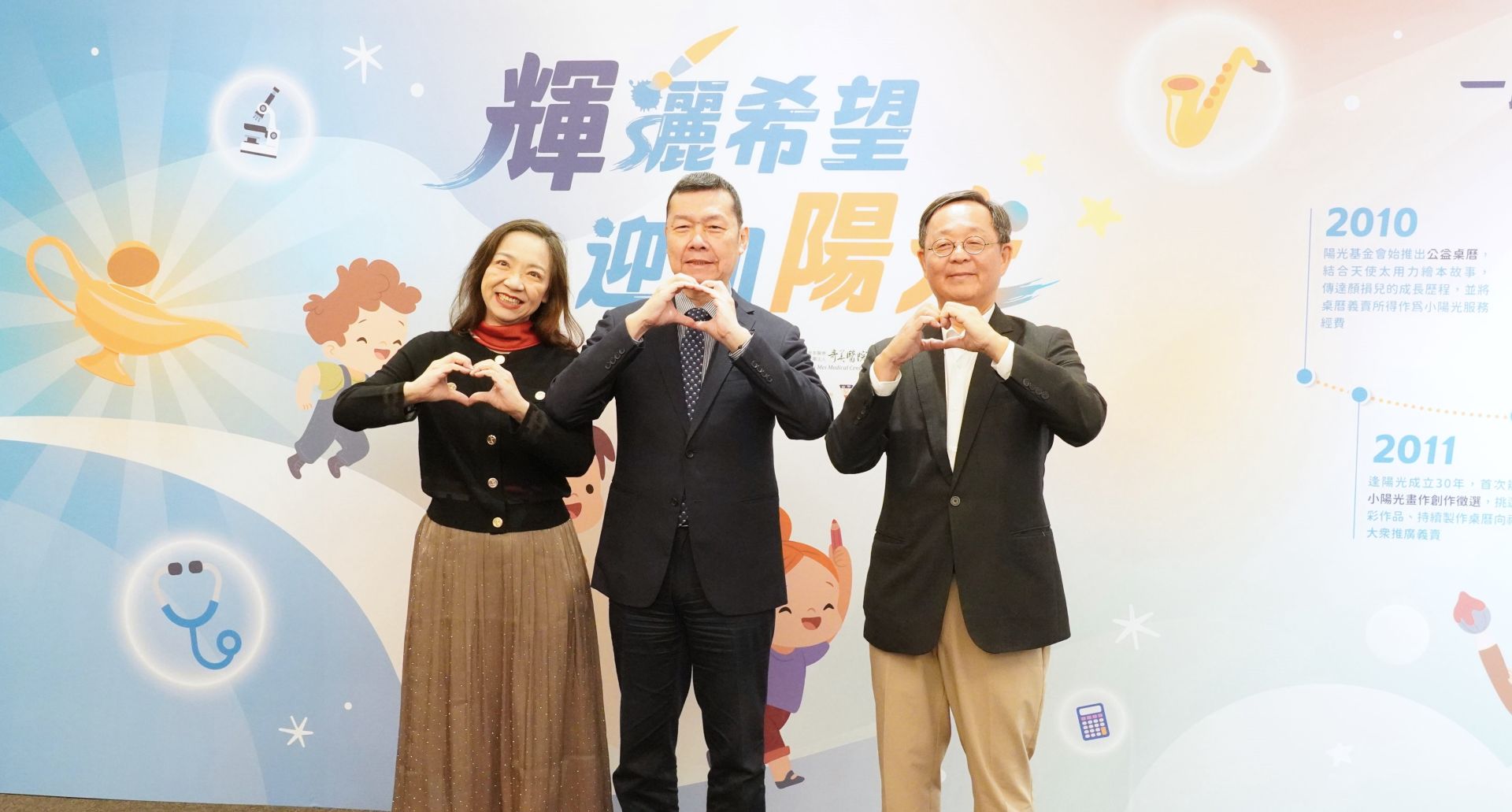 奇美醫療財團法人奇美醫院院長林宏榮(中)攜手陽光基金會董事長劉陽明(右)、台灣輝瑞大藥廠總裁葉素秋,讓「藝術入醫療,生命更閃耀」