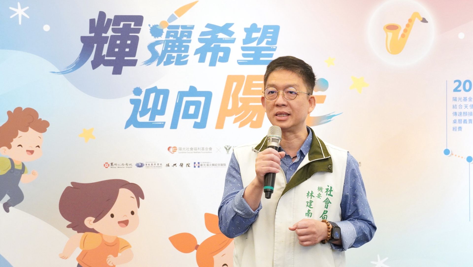 臺南市政府社會局秘書林建南於2025陽光小畫家畫展—『輝灑希望.迎向陽光』活動上致詞