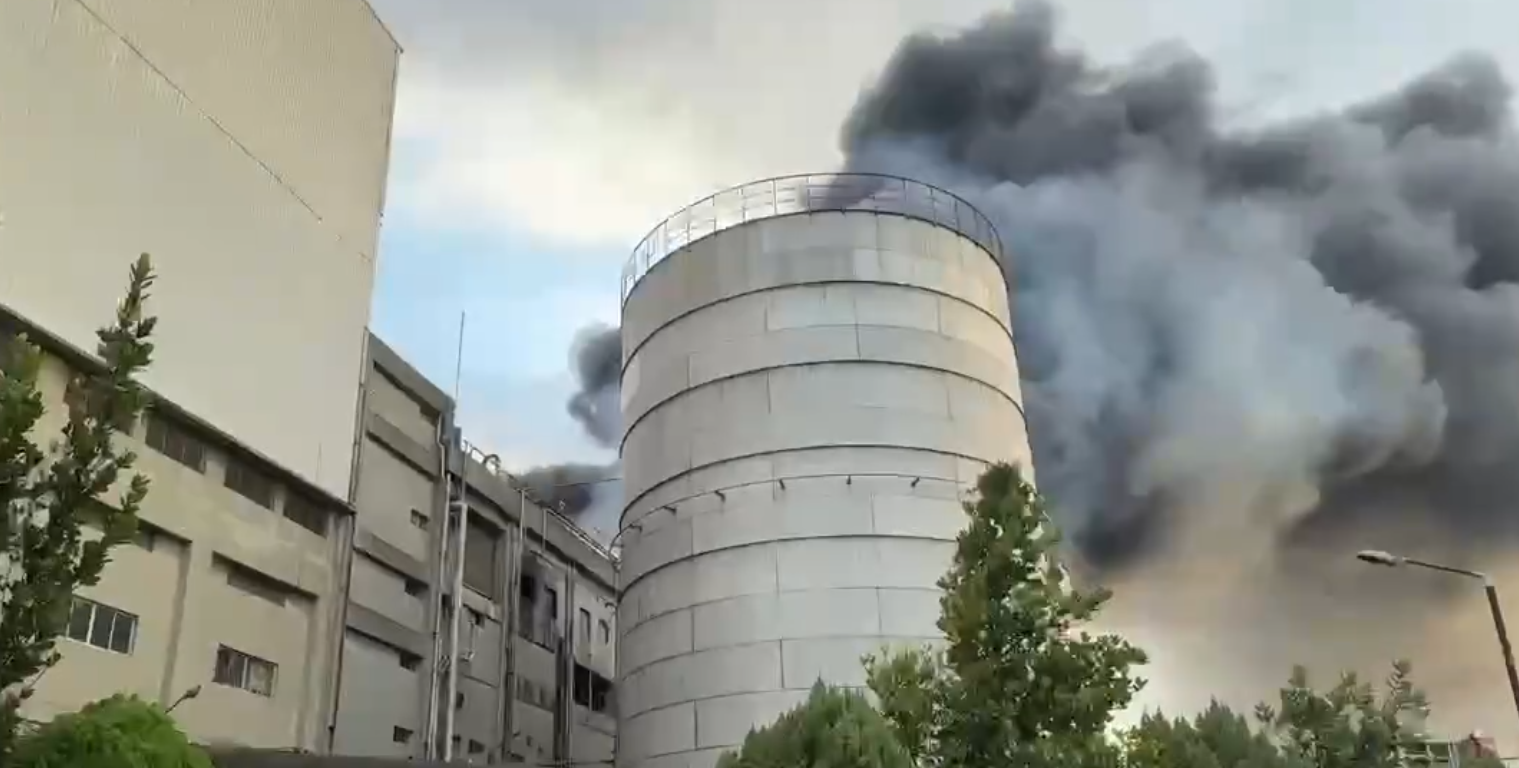 苗栗頭份停業工廠火警濃煙沖天。翻攝畫面
