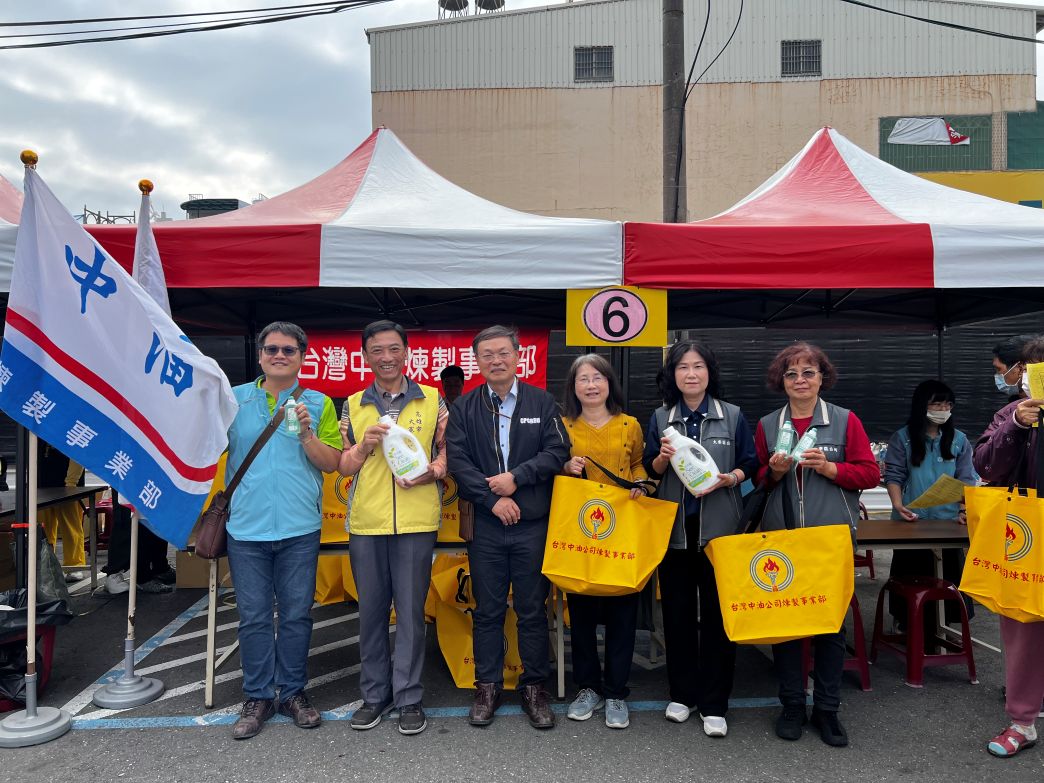 ⬆️中油公司煉製事業部副執行長陳正喜(左3)與大寮區公所區長鍾炳光(左2)為活動送上溫暖。