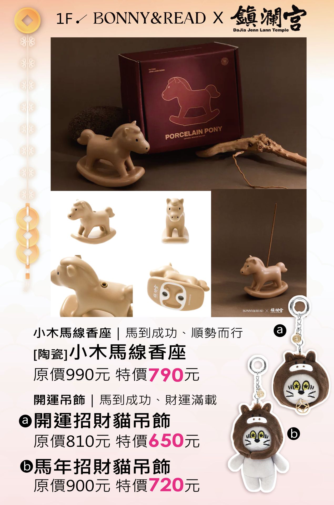 館內品牌也推出多款應景商品。1F Daniel’s Friends帶來Jellycat赤焰馬與坎特內小馬玩偶;絨絨森林推出花開富貴竹搭配金元寶花盆組合。The North Face與New Balance推出馬年限定服飾與鞋款;Bonny&Read、大甲鎮瀾宮、HARPER、北港武德宮及TOYSELECT等品牌亦推出聯名或應景商品。運動與生活用品方面,ABC MART、24hrs.等品牌同步推出春季新品與優惠。