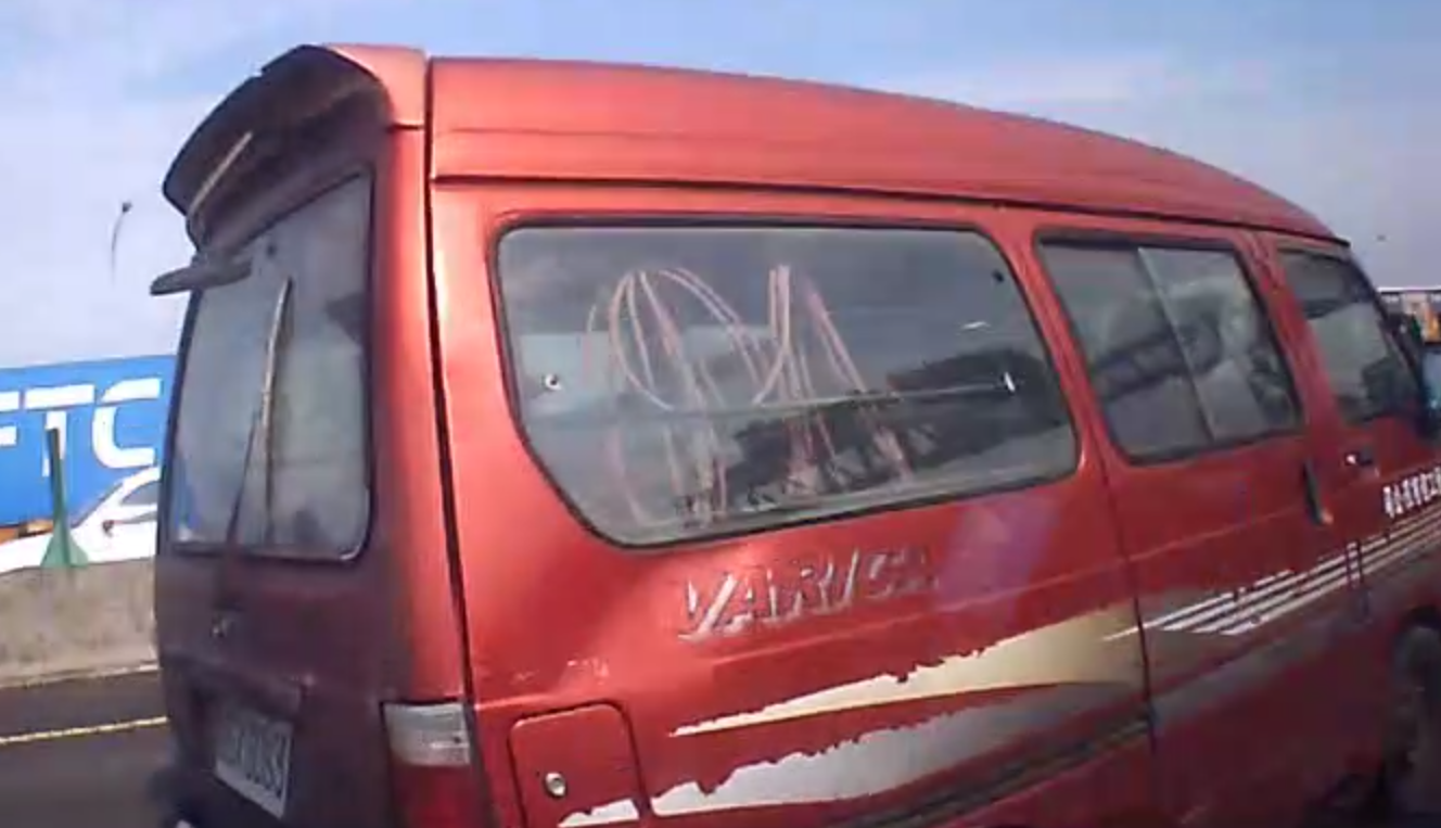 自小客車衝向小貨車,兩車隨即相撞小貨車撞翻。翻攝畫面