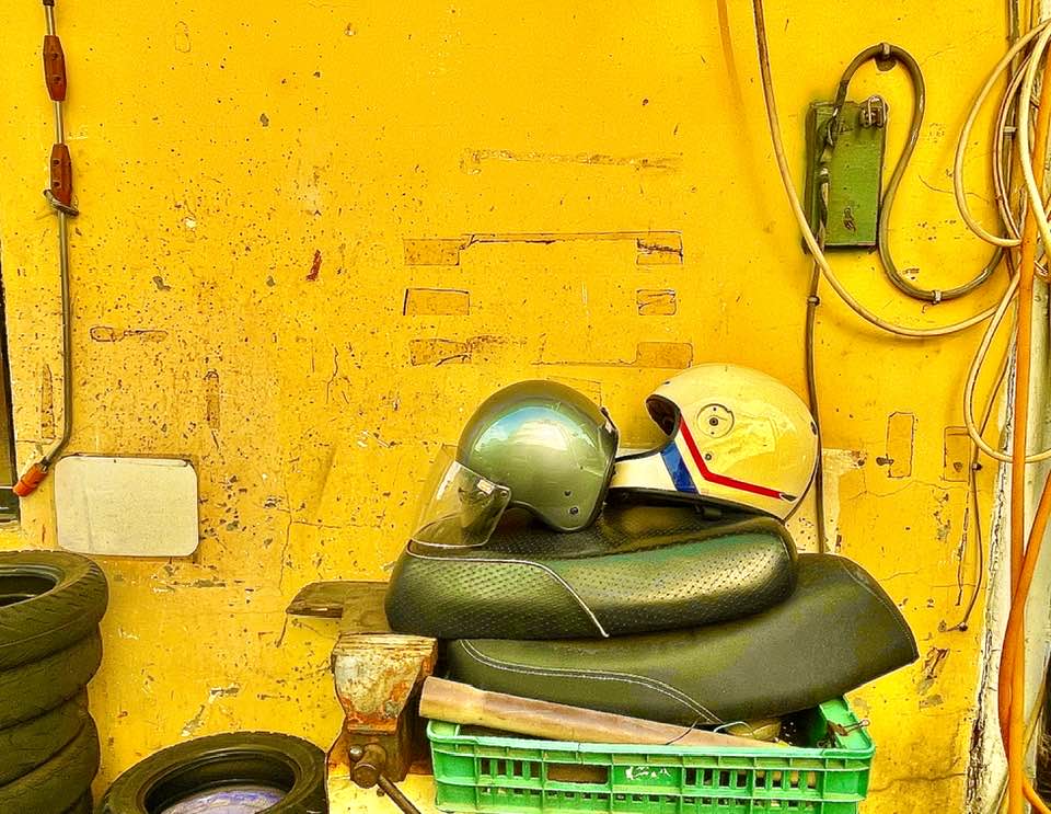 經過一家機車行的轉角,這個閒散的景致吸引了我的目光。