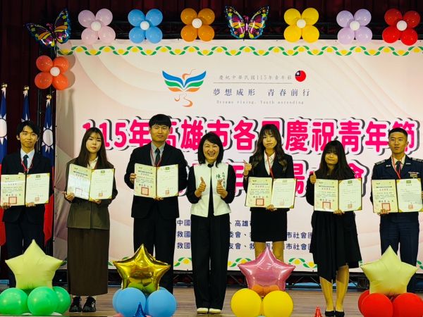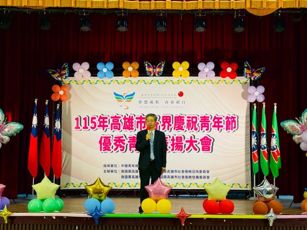 【視傳媒記者吉雄世高雄報導】115年高雄市各界慶祝青年節「優秀青年表揚大會」於3月28日上午10時假高雄市立空中大學玫瑰廳隆重舉行。現場貴賓雲集,包括高雄市議員陳麗娜、黃柏霖、立法委員及高雄市議員均派代表參加、輔英科大副學務長高永男、忠孝國中校長鍾文杰、高雄市慈善團體總會榮譽理事長蘇金樹、高雄市張老師中心總幹事謝璦如、高雄市團委會指導委員林武智、林明道、黃雄鵬、林仁興、公益顧問趙建國、發展委員會會長羅秋殷、諮詢委員會副召集人陳仕雄等人皆到場祝賀,共計近420人參與受獎及觀禮,場面熱烈隆重,讓本屆優秀青年備感榮耀。