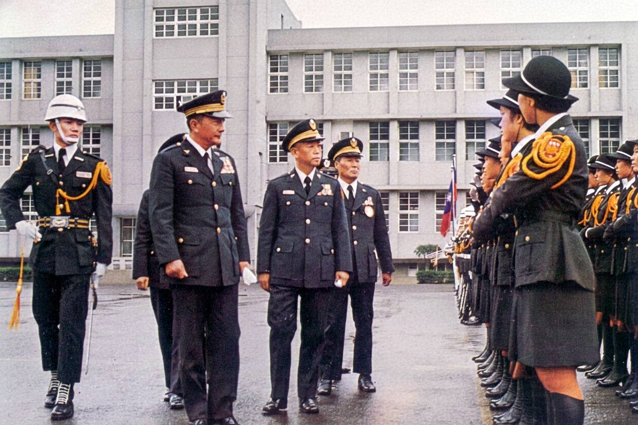 孔兼校長主持學校畢業典禮教育長周之光陪同檢閱學生儀隊 警察學校94期第二梯次95期第一梯次畢業(警光雜誌248期封面照 66.01.01警政文庫提供)
